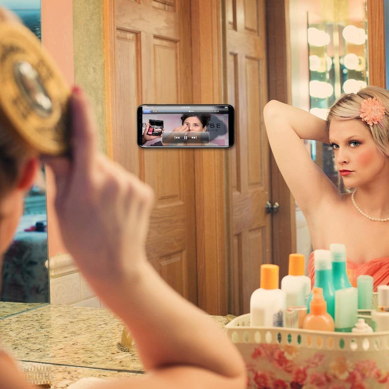 Can Stick to glass, mirrors, whiteboards, metal, kitchen cabinets or tile, car GPS, and most smooth, flat surfaces.